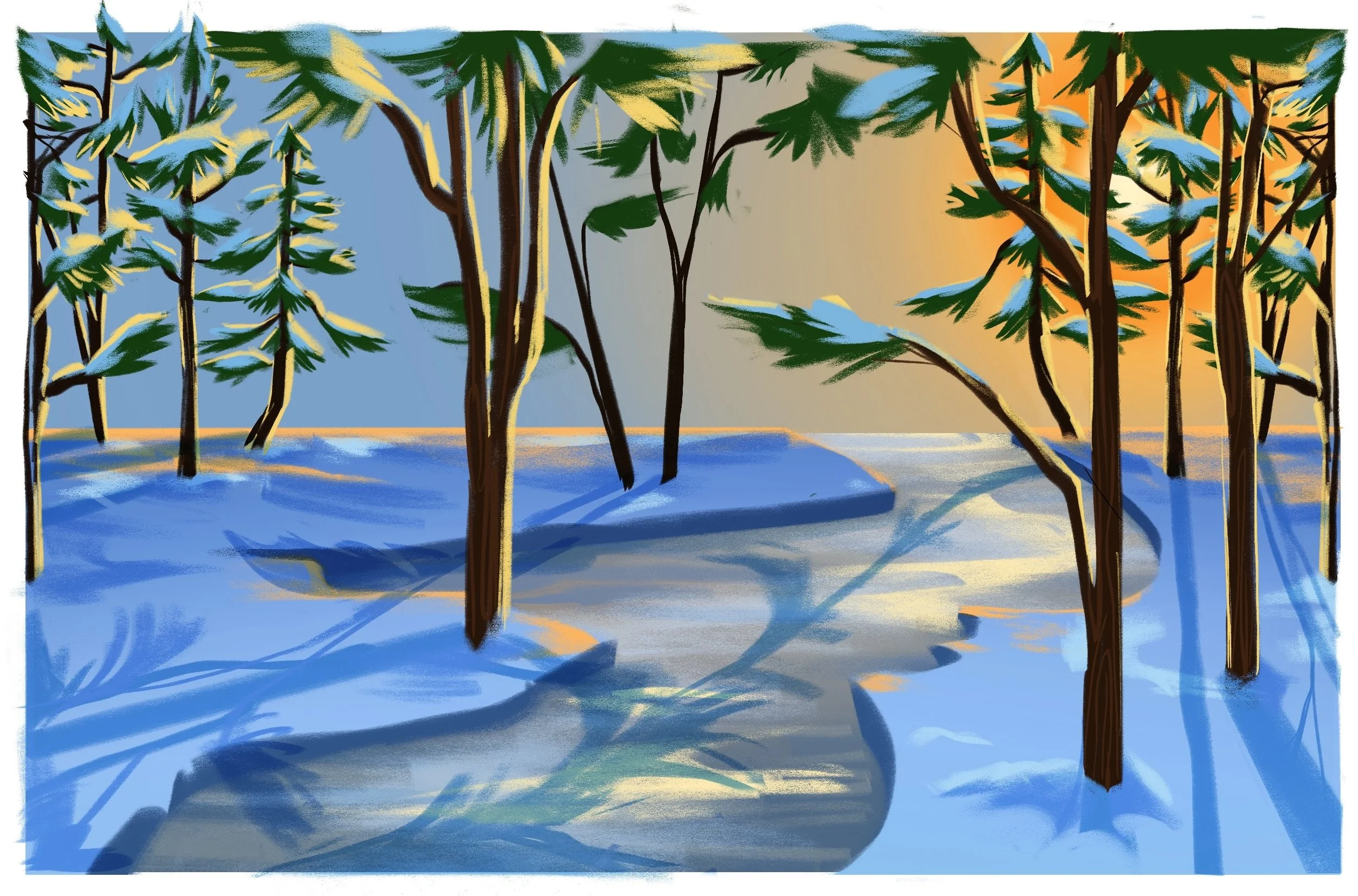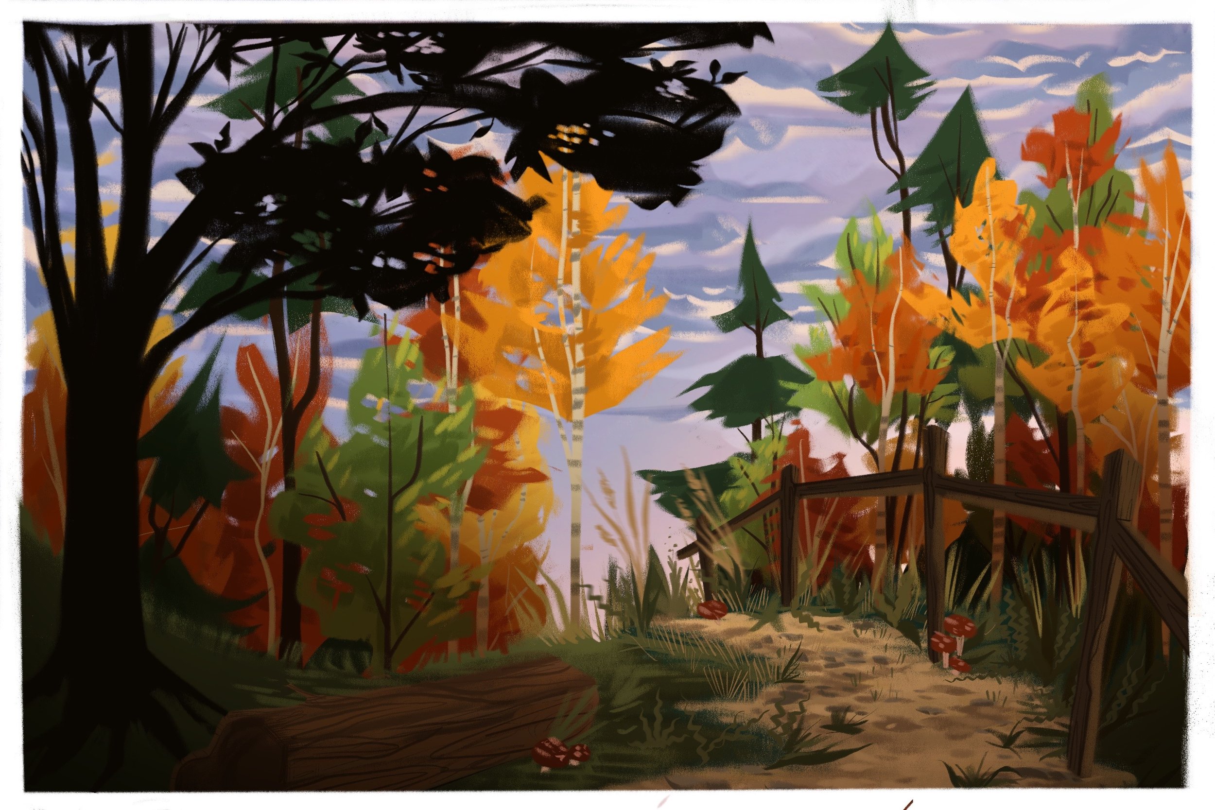 This was one of the largest (physically large) works I’ve taken on in my career. Working on this outdoor layout painting on a canvas larger than me challenged my skills in knowledge of colour, perspective, and my abilities in acrylic painting. I’m so happy with how the final piece turned out and how it looks in the owners home. Throughout the process I tried out a few different nature concepts.