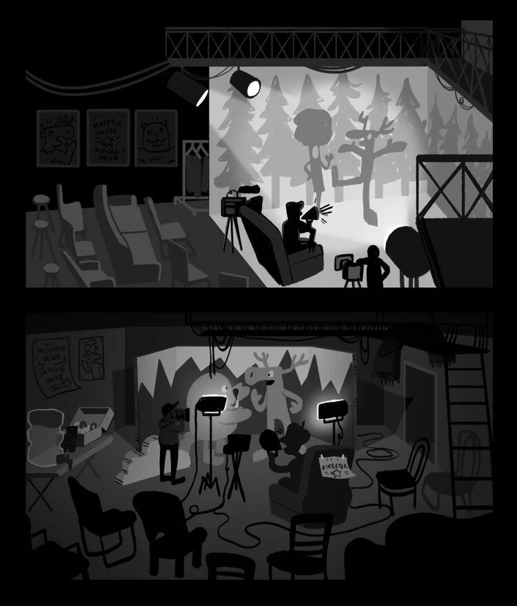 Interior/Exterior concept work for a show written by my friend Jim Graves in 2019. Mascots is about a trio of college students working at a local Canadian broadcast network making a children’s show. This would be an adult oriented program featuring the grimier sides of trying to prove your worth through small town stardom. I also designed a full character lineup for this show as a part of the full pitch.